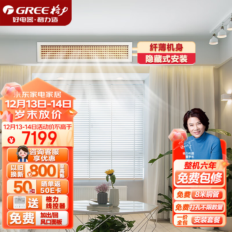 格力(GREE)中央空调 风管机一拖一 2匹家用嵌入式空调 直流变频FGR5Pd/C3Nh-N2 京仓派送(一价全包)价格:7199.00元!
