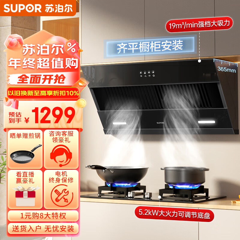 苏泊尔(SUPOR)抽油烟机燃气灶套装 家用小尺寸大吸力 19立方侧吸式小户型烟灶套装DJ13S+DB28液化气价格:1299.00元!