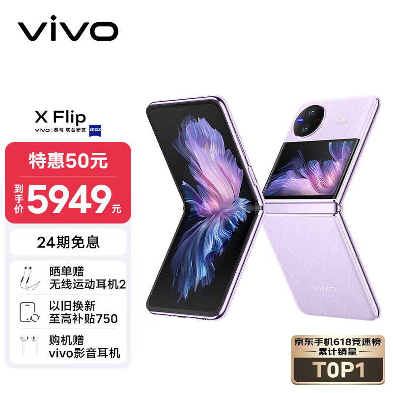 vivo X Flip 12GB+256GB 菱紫 轻巧优雅设计 魔镜大外屏 悬停蔡司影像 骁龙8+ 芯片 5G 折叠屏手机 xflip价格:5999.00元!