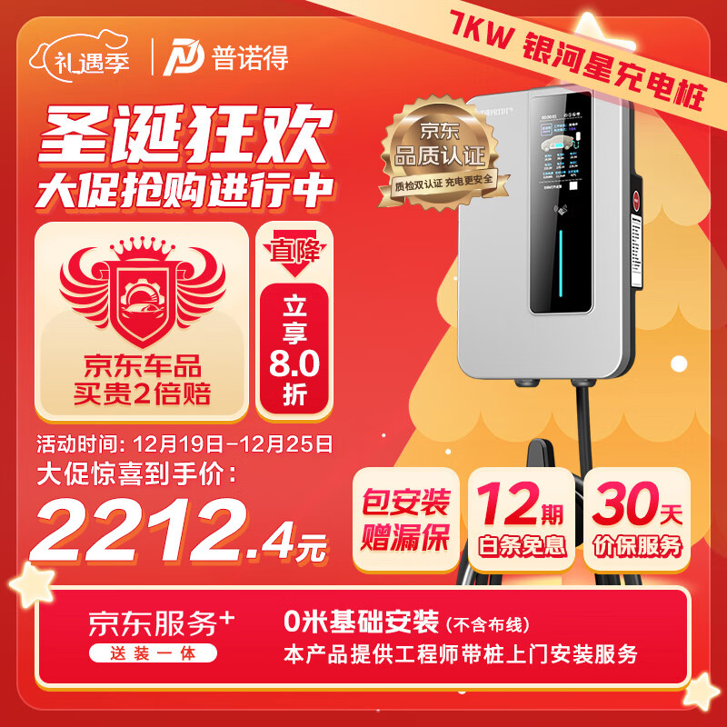 普诺得银河星 新能源电动汽车7KW家用充电桩 适配于特斯拉问界M7极氪小鹏G6G9充电器 送装一体含基础安装价格:2543.00元!