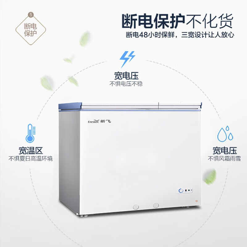 5、这款新飞冰柜容量很大,性价比很高,耗电量低,京东物流送货快,整体很满意!