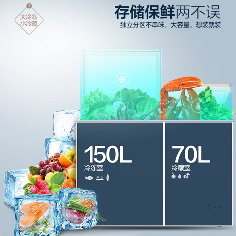 新飞(Frestec)220升家用商用冰柜 双箱双温冷柜 顶开门 冷藏冷冻卧式冰箱(白色)BCD-220DHF价格:999.00元!