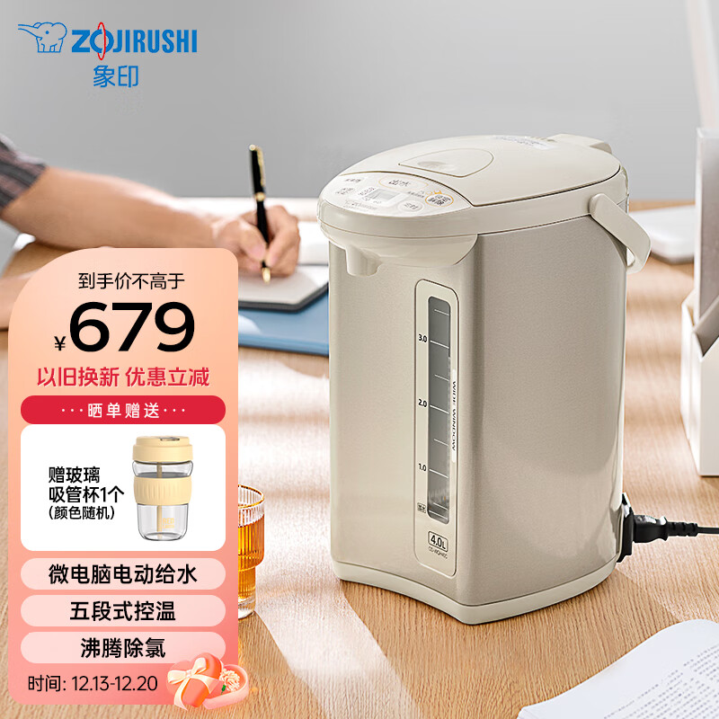 象印(ZO JIRUSHI)电水壶五段控温微电脑可定时 家用办公4L容量 CD-WQH40C-CM(米色)价格:679.00元!