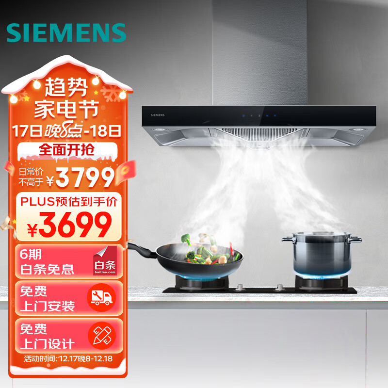 西门子(SIEMENS)抽油烟机灶具套装20m3/min 欧式油烟机 4.5kW燃气灶955W+GA23MP烟灶套装天然气价格:3699.00元!