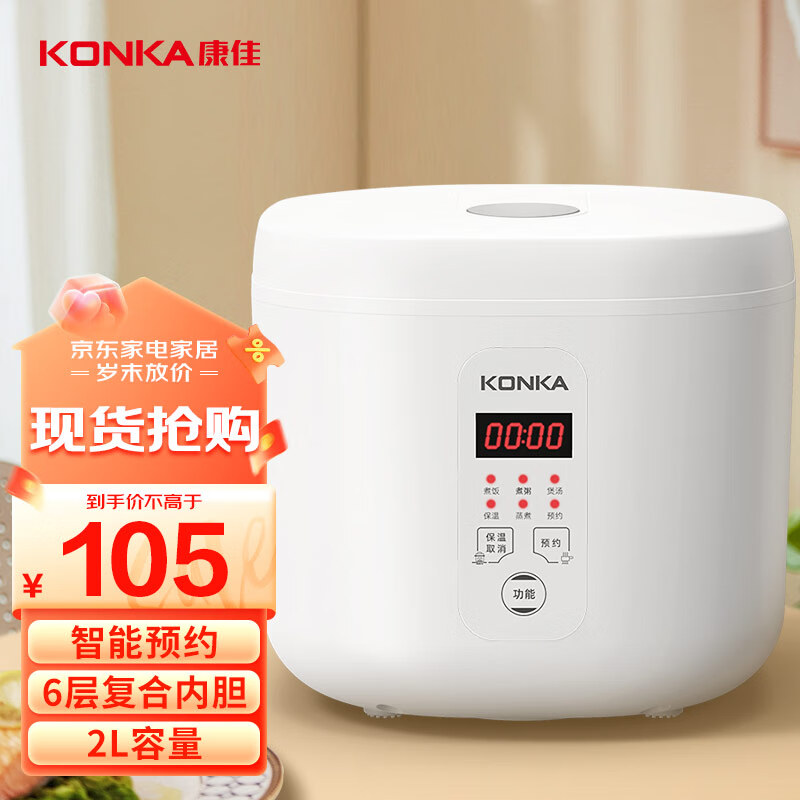 康佳(KONKA)迷你电饭煲小电饭锅 2L容量1-3人智能温控12小时预约煮饭煮粥锅 KRC-W20C401(B)价格:105.00元!