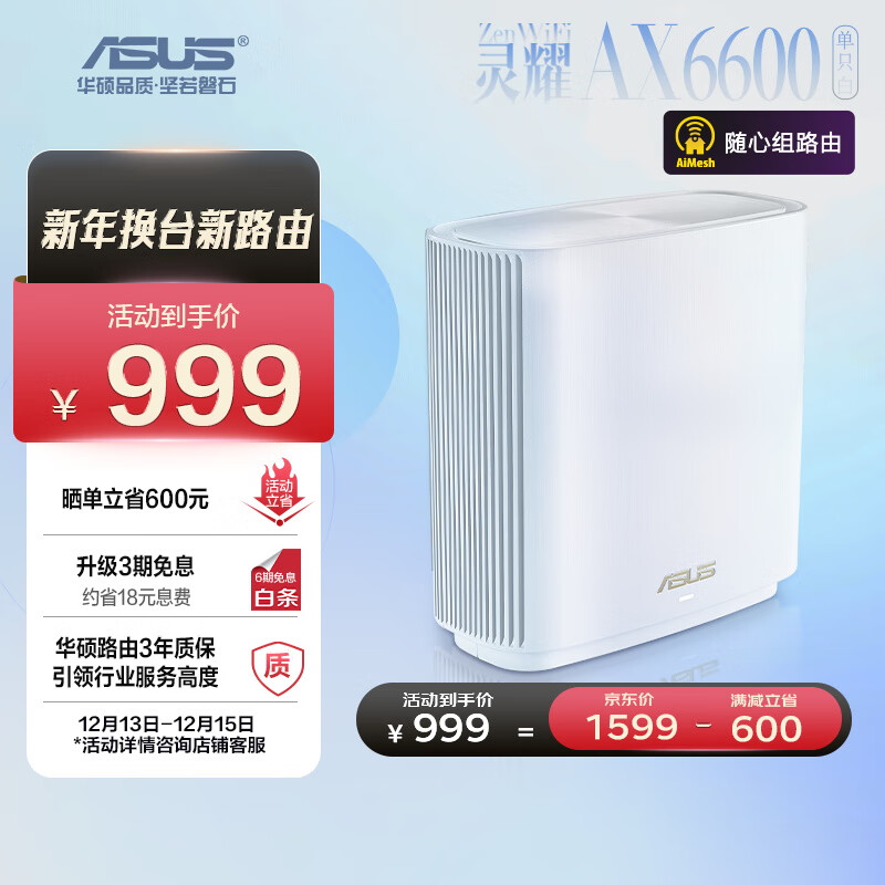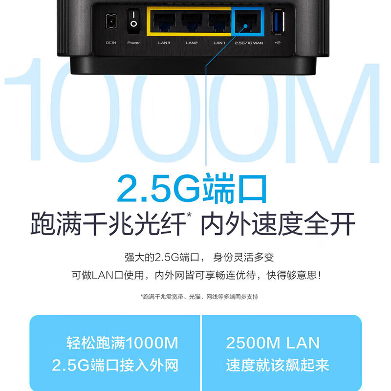 华硕(ASUS)AX6600M三频无线路由器|灵耀分布式路由器|博通四核|2.5G口|全屋覆盖WiFi6|家长管理路由价格:999.00元!