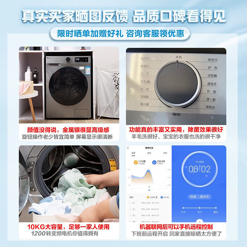 1、静音很好,洗的也干净,比实体店便宜*块钱。送货师傅也很亲和力。
