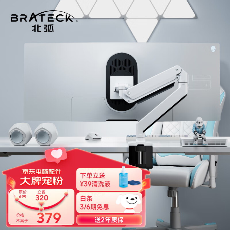 Brateck北弧 显示器支架 升降电脑支架壁 E601-U流光白/个 17-49吋 支持18KG/屏价格:369.00元!