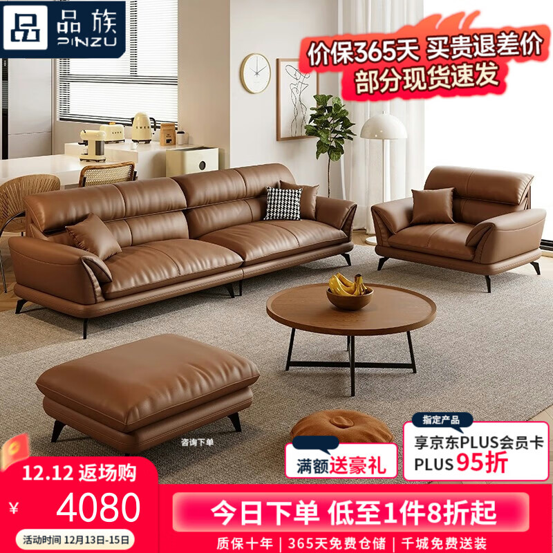 品族意式轻奢真皮沙发头层牛皮沙发 客厅小户型直排沙发 PZ-688价格:5099.00元!