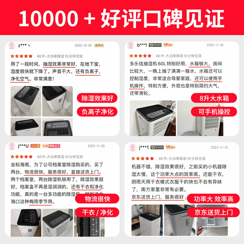 3、南方一到梅雨季,整个房间都潮湿。犹豫了很久,马安排这款多乐信。收到货,马上使用。两个小时后,整个房间都是清爽的了