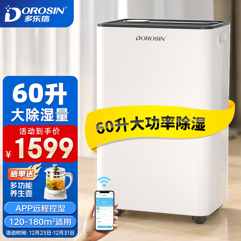 多乐信(DOROSIN)除湿机/抽湿机 除湿量60升/天 别墅 家用地下室工业除湿器 APP手机遥控 ER-60价格:1899.00元!