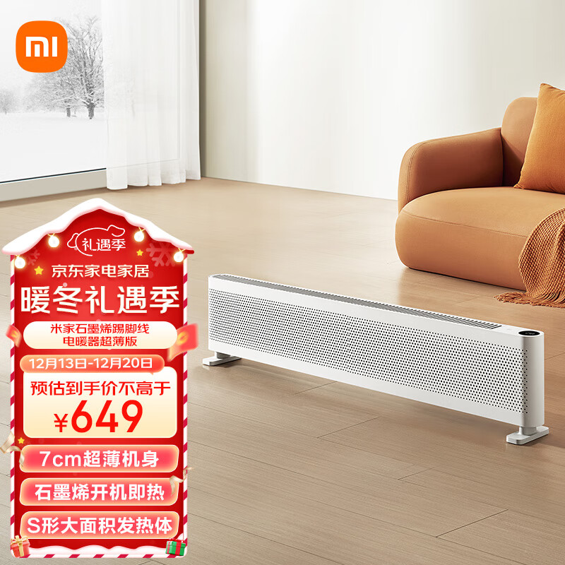 米家 小米超薄踢脚线 电暖器取暖器 石墨烯速热 7cm超薄 全屋对流取暖 电暖气 IPX4防水 无极变频恒温价格:649.00元!
