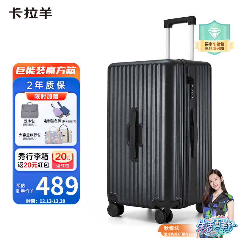 卡拉羊行李箱小型20英寸拉杆箱男女登机箱百褶旅行箱CX8118钢琴黑价格:609.00元!
