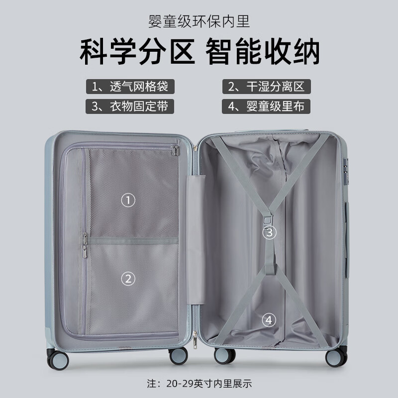 3、在实体店看了大小才买的,24寸有点大,22寸刚好,轮子在瓷砖上试了一下真的没声音。昨晚买的,今天中午就到了,京东自营是真的快。
