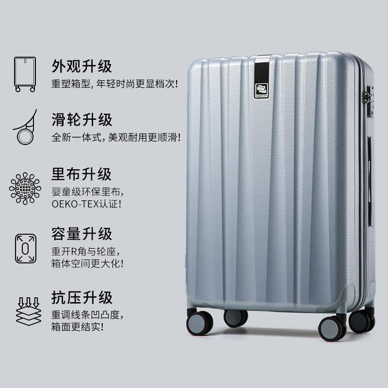 汉客行李箱男拉杆箱女旅行箱50多升大容量22英寸环保灰密码箱再次升级价格:479.00元!