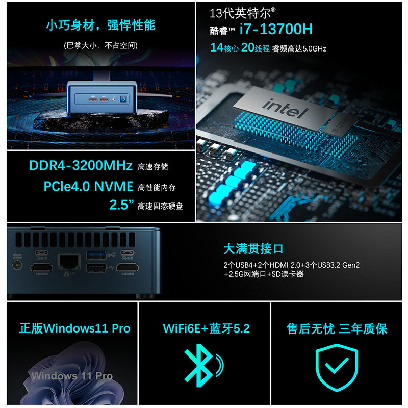 积核(GEEKOM)IT13代酷睿i7-13700H高性能迷你办公NUC小机箱mini主机台式机 ( 32G+1TB 正版Win11Pro )价格:4699.00元!