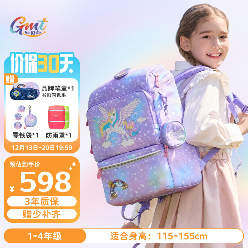 Gmt for kids儿童书包小学生超轻护脊大容量抗菌礼物1-4年级女寻梦独角兽22L价格:668.00元!