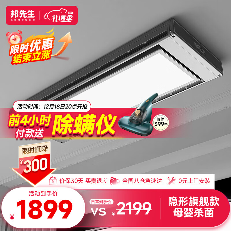 邦先生电动晾衣架智能阳台全自动升降超薄隐形伸缩嵌入式凉晒衣杆机M33C价格:2199.00元!