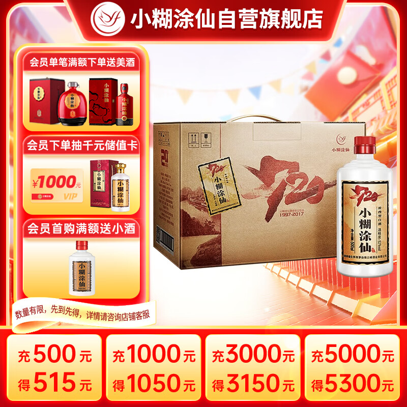 小糊涂仙 20周年 720(裸瓶装)浓香型白酒 52度 500ml*6瓶 整箱装 贵州价格:808.00元!