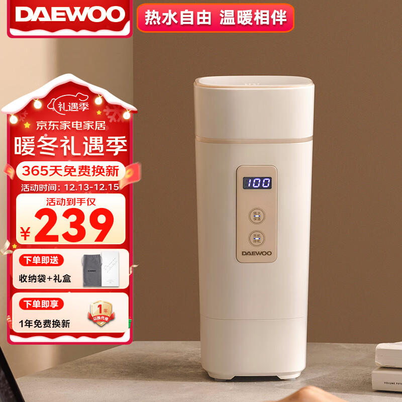 大宇(DAEWOO)电水壶 便携式烧水壶电热水杯家用旅行迷你小型电热水壶 调奶烧水杯办公室养生保温杯 D2升级款价格:239.00元!