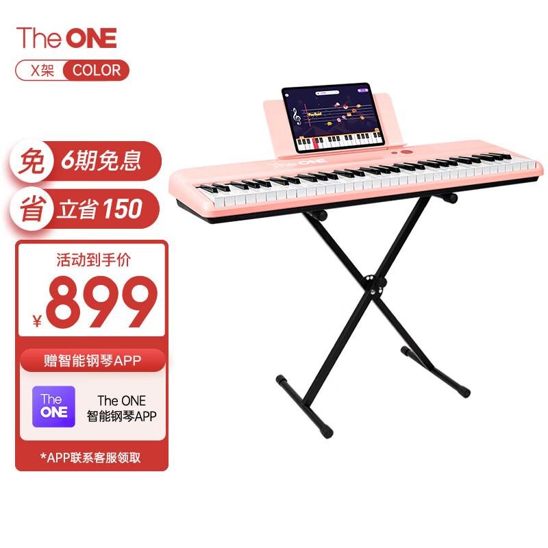 壹枱(The ONE)智能电子琴61键 成人儿童蓝牙便携初学入门乐器 COLOR 粉色+X架价格:1049.00元!