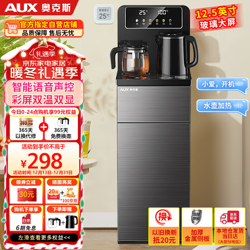 奥克斯(AUX)家用语音茶吧机 多功能下置桶饮水机遥控智能 全自动自主控温立式茶吧机温热YCB-71价格:318.00元!