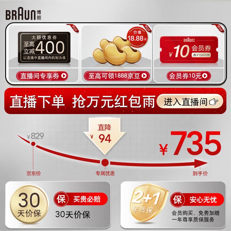 博朗(BRAUN)亲肤6系礼盒款电动剃须刀进口刀头往复式刮胡刀男士男生生日礼物(敏感肌)价格:749.00元!