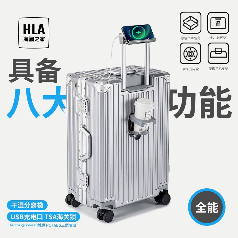 海澜之家(HLA)商务行李箱男多功能拉杆箱旅行登机密码托运皮箱 流光银29英寸价格:549.00元!