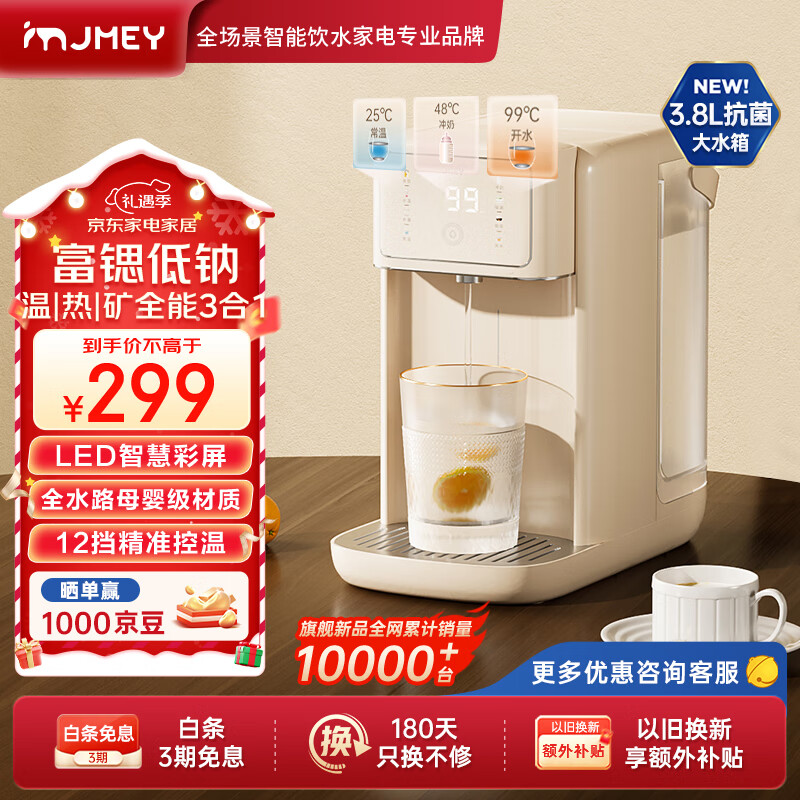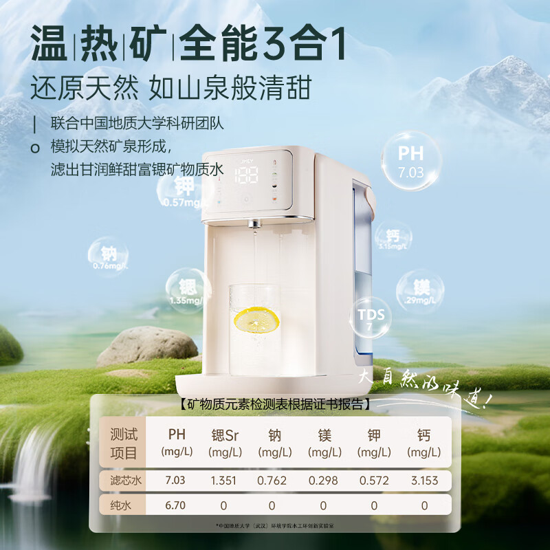 集米(jmey)升级富锶矿化K3 即热式饮水机富锶低钠矿物质活泉水饮水机矿泉水机 家用台式小型免安装大水箱价格:299.00元!