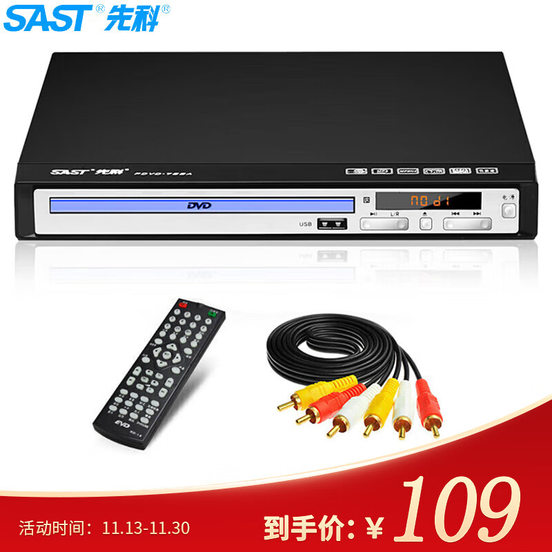 先科(SAST)PDVD-788A DVD播放机CD机VCD DVD影碟机USB音乐播放机儿童evd播放机(黑色)价格:119.00元!