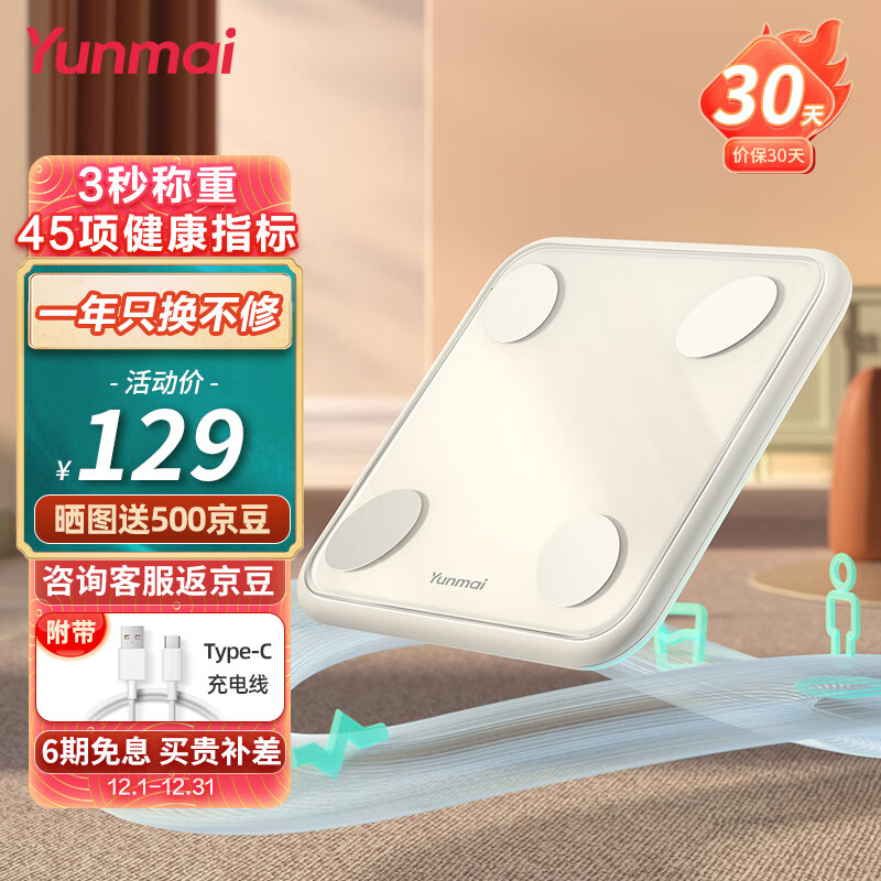 云麦智能体脂秤3s 充电智能电子秤家用体重秤 升级45项人体健康数据 高精准减肥体脂称脂肪秤云雾白礼物礼品价格:159.00元!
