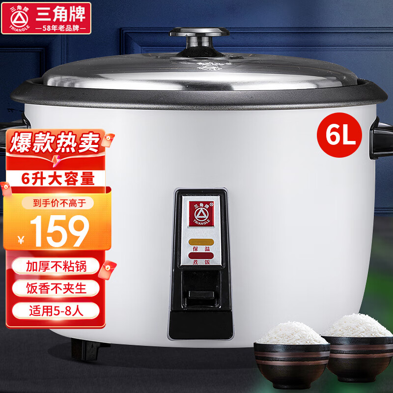 三角牌(Triangle)电饭煲老式电饭锅大容量带蒸笼柴火饭米饭锅鼓型锅小煮饭锅白色 5-8人用 6L价格:159.00元!