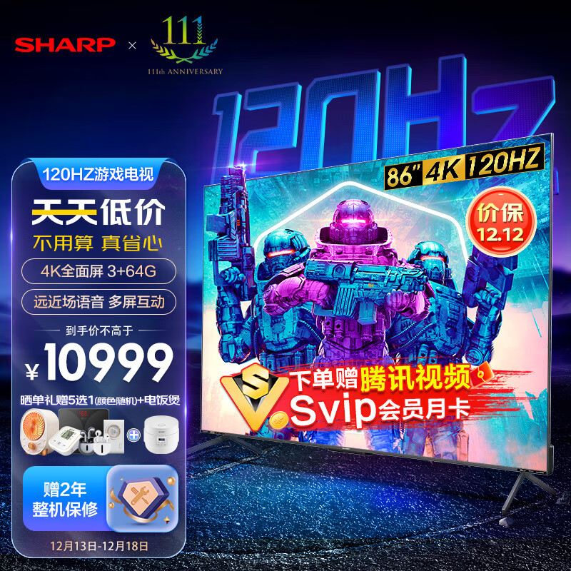 SHARP夏普电视4T-C86S7FA 86英寸120HZ液晶彩电4K屏3+64G游戏电视远近场语音多屏互动平板电视价格:10999.00元!