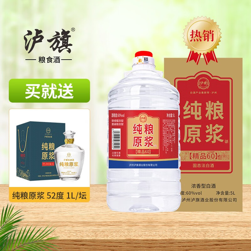 泸旗泸州红高粱酒 浓香型纯粮食白酒 可直饮高度桶装散酒泡酒 60度 5L 1桶 纯粮原浆【精品60】价格:199.00元!