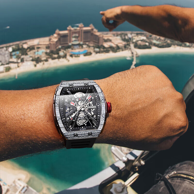 格雅(GEYA)手表男全自动镂空镶钻酒桶型机械男士国表生日礼物78071价格:2499.00元!
