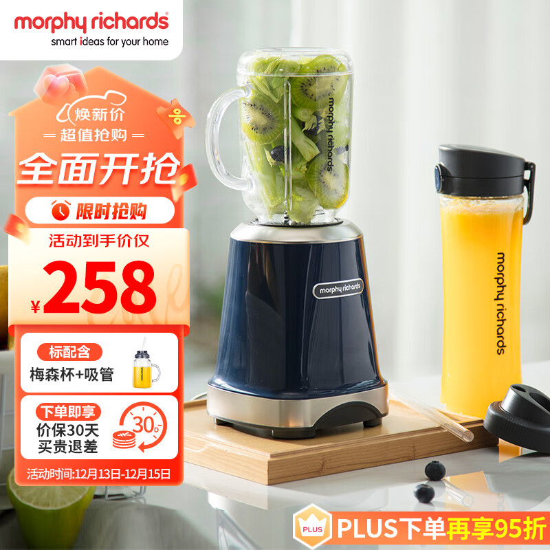 摩飞电器(Morphyrichards)榨汁机 便携式果汁机家用料理搅拌机梅森杯双杯水果电动榨汁杯MR9500价格:258.00元!