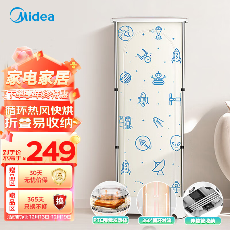 美的(Midea)干衣机家用 衣服烘干机定时小型 折叠婴儿衣物暖风烘衣机衣柜 MGJ90-02W价格:249.00元!