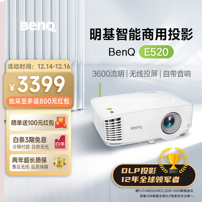 明基(BenQ)E520 智能投影仪 投影仪办公 投影仪家用 手机投屏(3600流明 手机ipad平板投屏 支持蓝牙)价格:3399.00元!