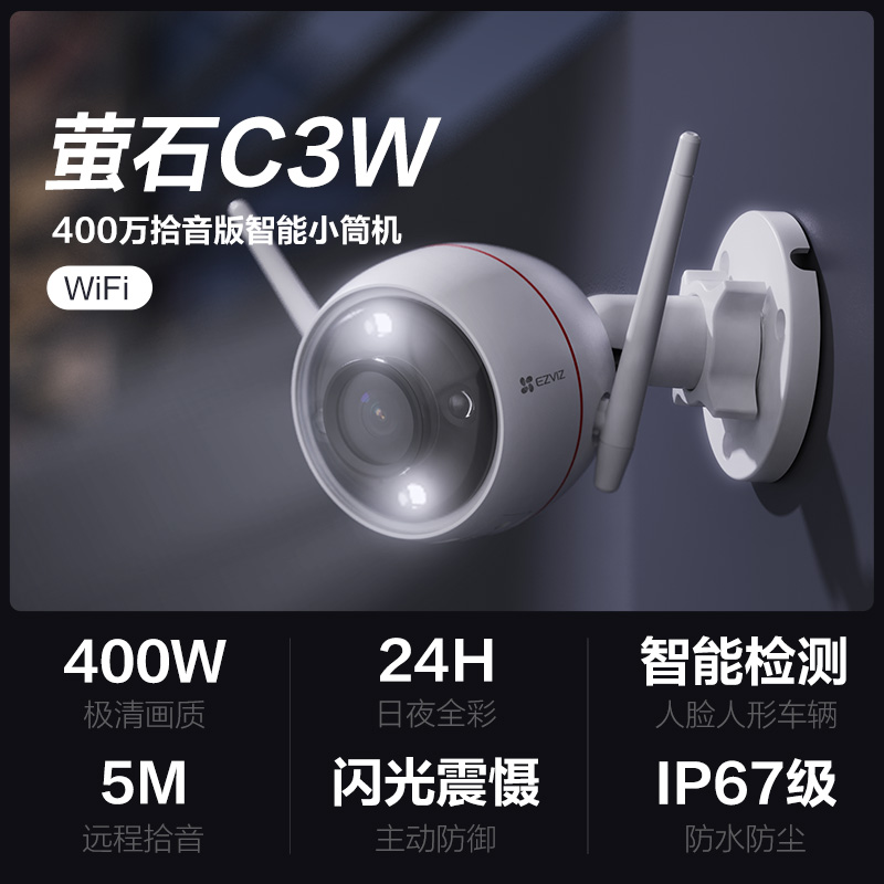 萤石 EZVIZ C3W 4MP 2.8mm拾音版 400万超清 日夜全彩 无线监控摄像头 室外IP67防水 AI人形检测 H.265编码价格:299.00元!