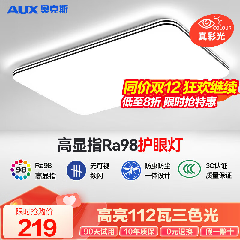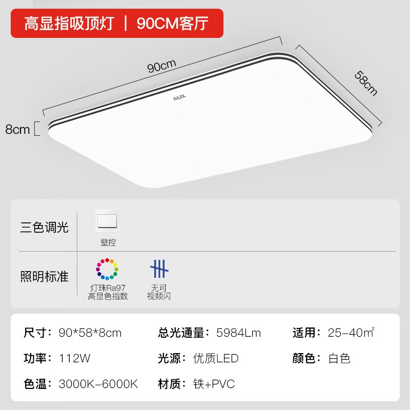 奥克斯(AUX) 客厅灯具led客厅大灯吸顶灯具套餐卧室现代简约超薄阳台灯 97高显!90cm三色112瓦适30㎡价格:218.70元!