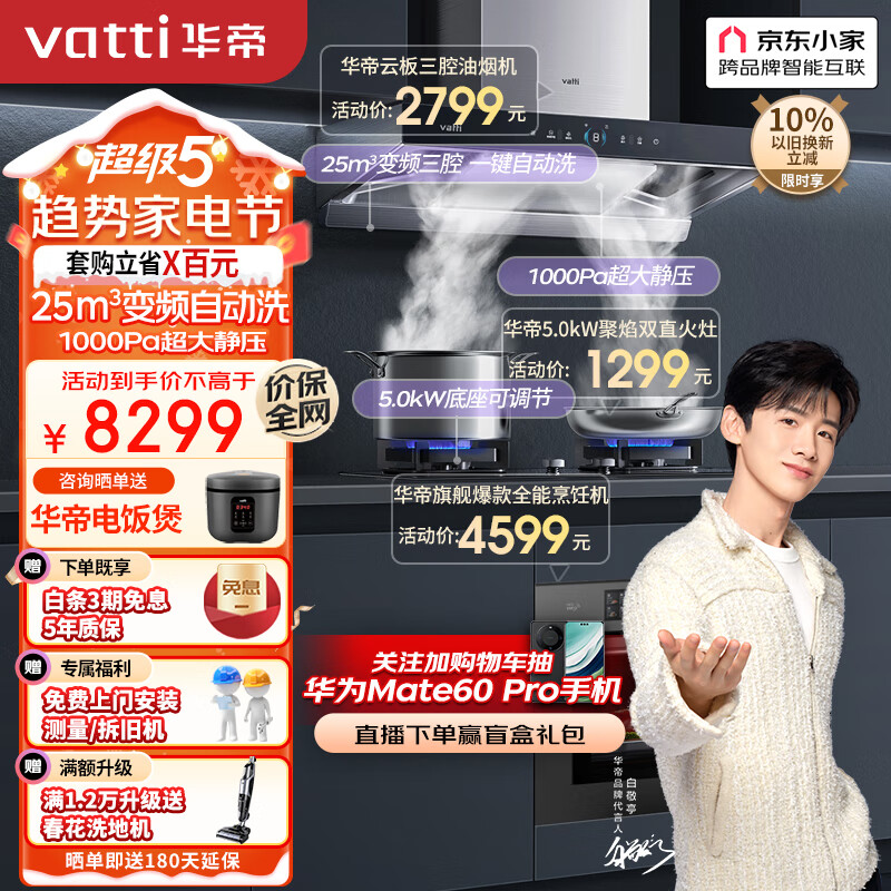 华帝(VATTI)欧式跨界三腔抽油烟机燃气灶具蒸烤箱家用厨房三件套 京东小家 i11S18+72B+23019(天然气)价格:8299.00元!
