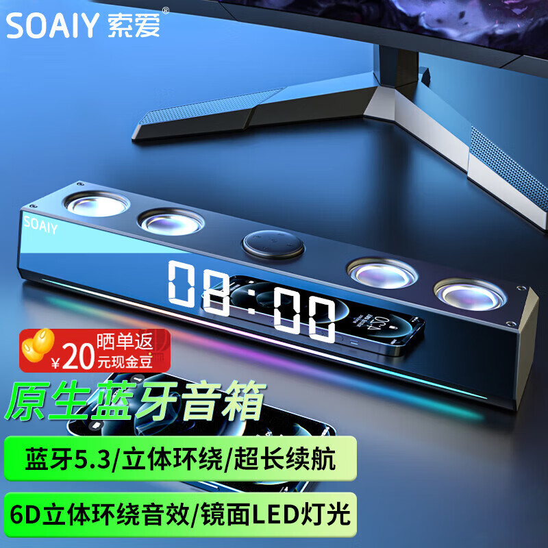 索爱(soaiy)电脑音响SH18蓝牙音箱家用桌面低音炮 时钟多媒体台式机笔记本USB迷你小钢炮 时钟版黑价格:199.00元!
