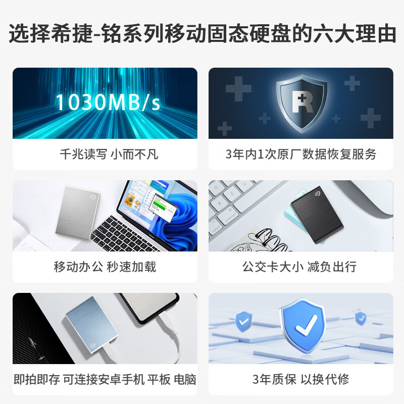 希捷(Seagate) 移动固态硬盘2TB PSSD NVMe 小铭 type-C USB3.2 黑色 安卓手机迷你小型 原厂数据恢复服务价格:1049.00元!