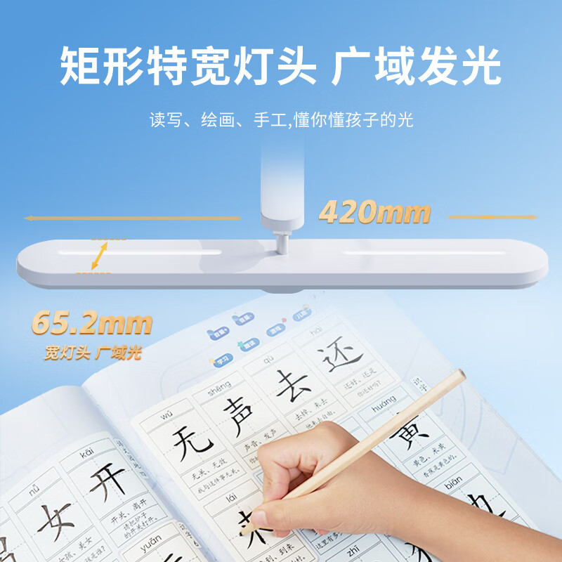 1、照射面积很广,亮度可调,不刺眼,无屏闪。孩子很喜欢。操作很方便。颜值也过关。相当不错的一款产品。还能多种方式固定非常的方便。