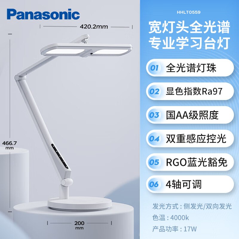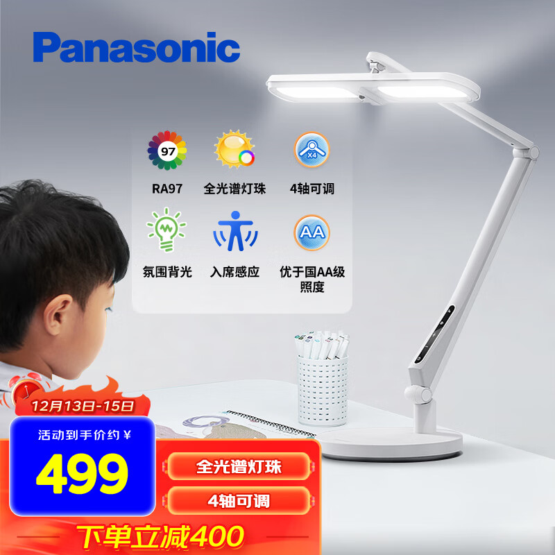 松下(Panasonic)国AA级全光谱儿童护眼学习台灯无蓝光智能6段调光阅读灯致玫升级价格:899.00元!