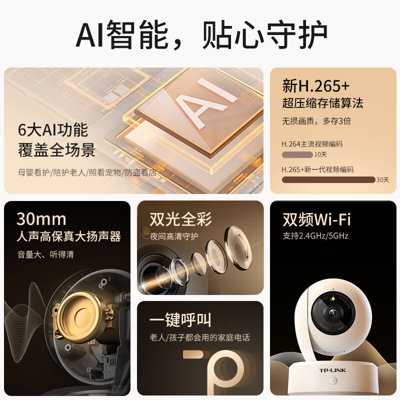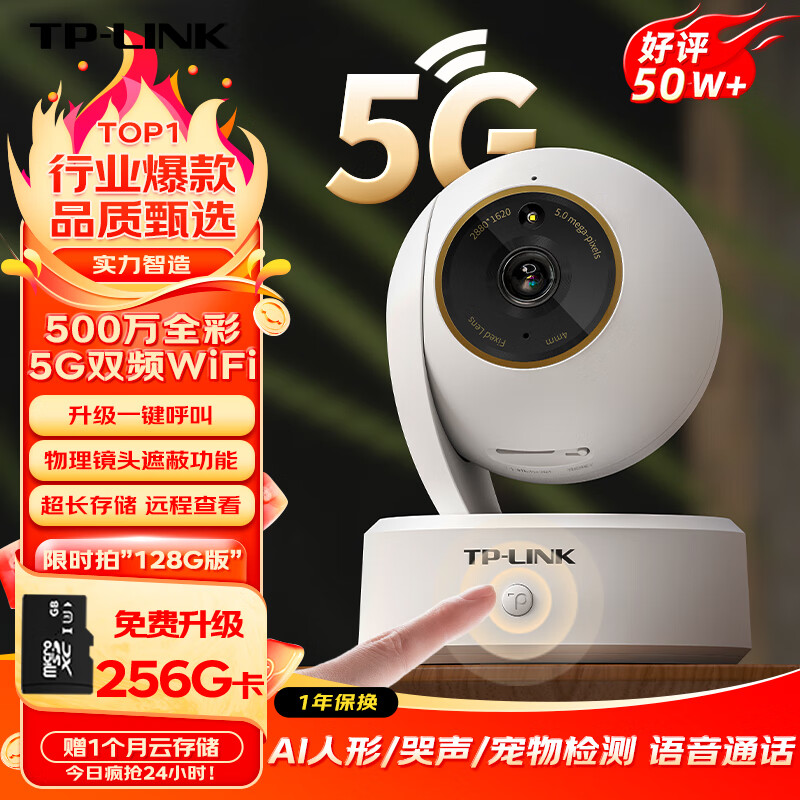 TP-link 超级500万双频摄像头家用监控器360全景无线家庭室内可对话手机远程网络门口高清 IPC45AW 全彩 Plus价格:359.00元!