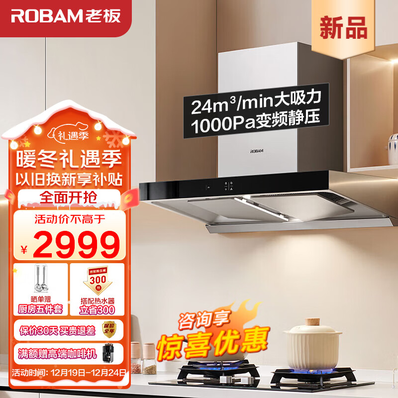 老板(Robam)油烟机抽油烟机欧式变频双腔大吸力油烟机24风量挥手智控家用单烟机60X6S 【店长推荐】60X6S单烟机价格:3199.00元!