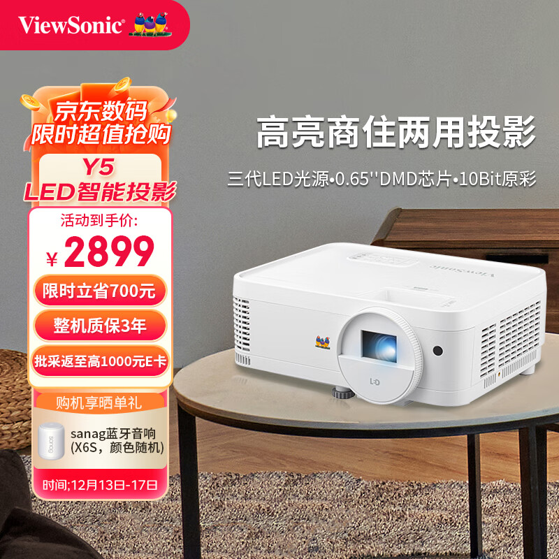 优派 Y5 投影仪办公 智能投影机 家用电竞(0.65DMD 120Hz高刷 U盘直读 无线同屏 蓝牙音响 四向校正)价格:3599.00元!