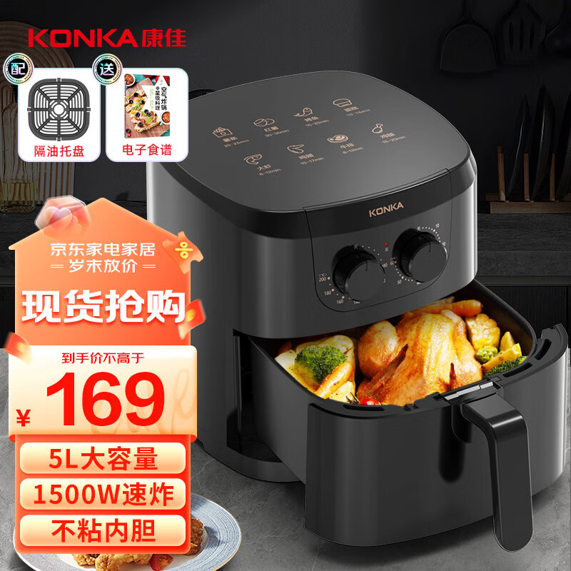 康佳(KONKA)空气炸锅5L 家用多功能无油电炸锅 低脂少油 耐磨不粘易清洁 KKZG-5012-W价格:169.00元!