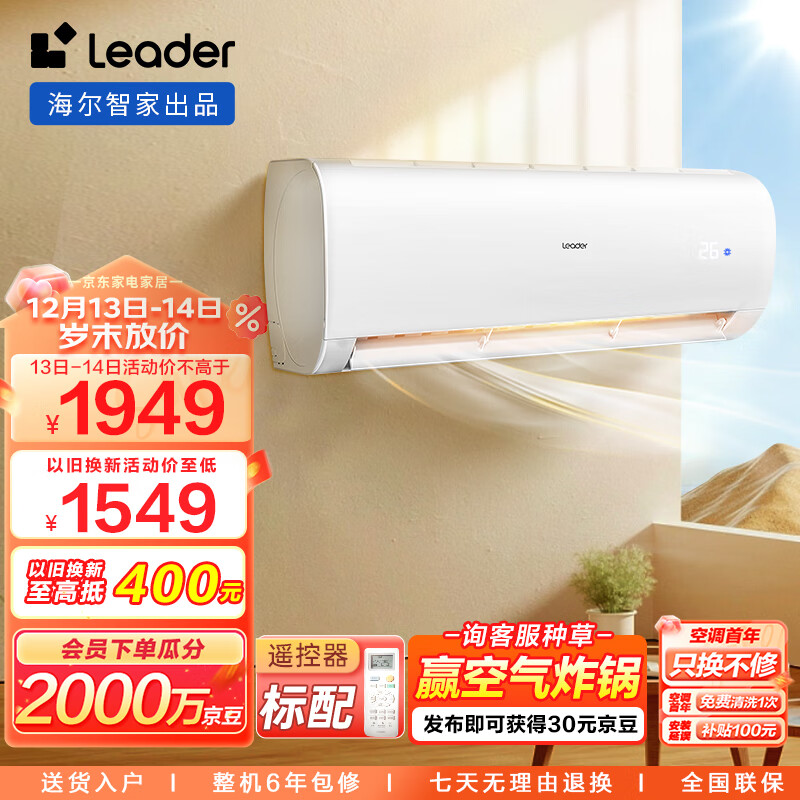 统帅空调(Leader)海尔智家 1.5匹变频空调挂机 新能效壁挂式空调 自清洁KFR-35GW/83@T-Xc以旧换新价格:1949.00元!